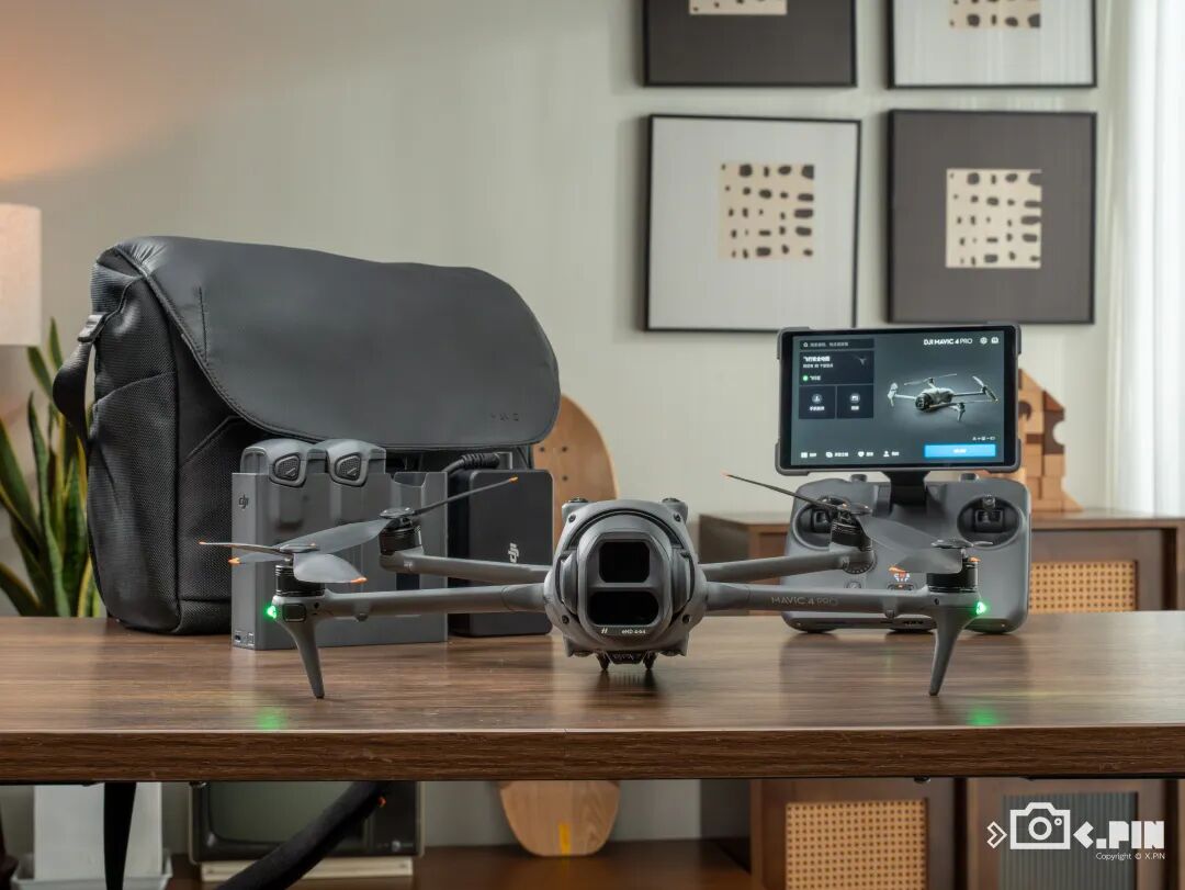 更何况 Mavic 4 Pro 搭配遥控器,外加三块电池、充电器和充电线,这些配件全塞包里差不多有五、六斤重,这重量对那些喜欢轻装上阵的绝大多数普通人来说,要是开车还好,没车全靠人背的话完全就是一种负担。